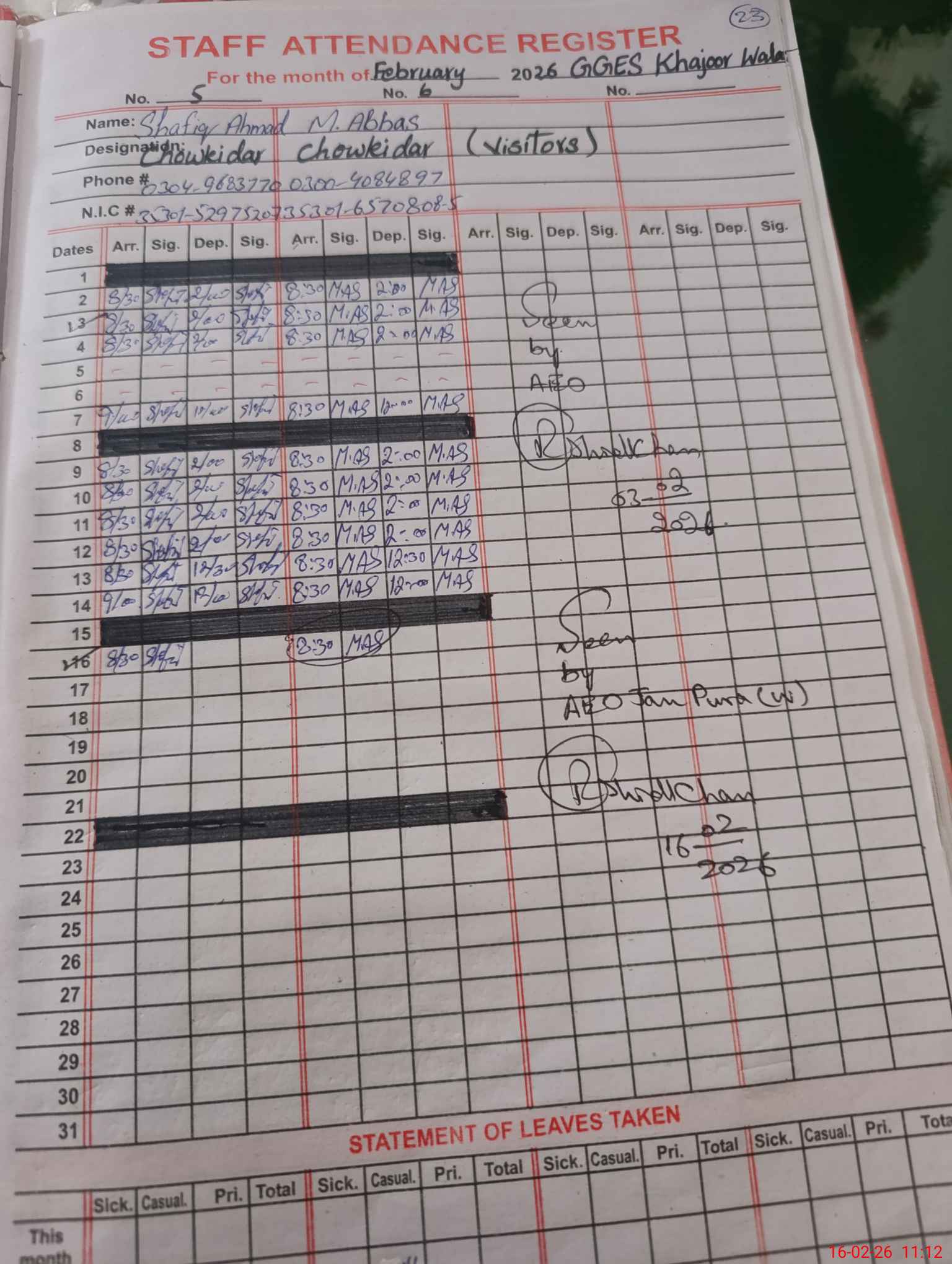 | 35**** | Mu**** Ab**** | Regular | 0 | 0 | 0 | 0 | 0 | 0 | 0 | 0 | 0 | Absent (Un-Authorized) | |