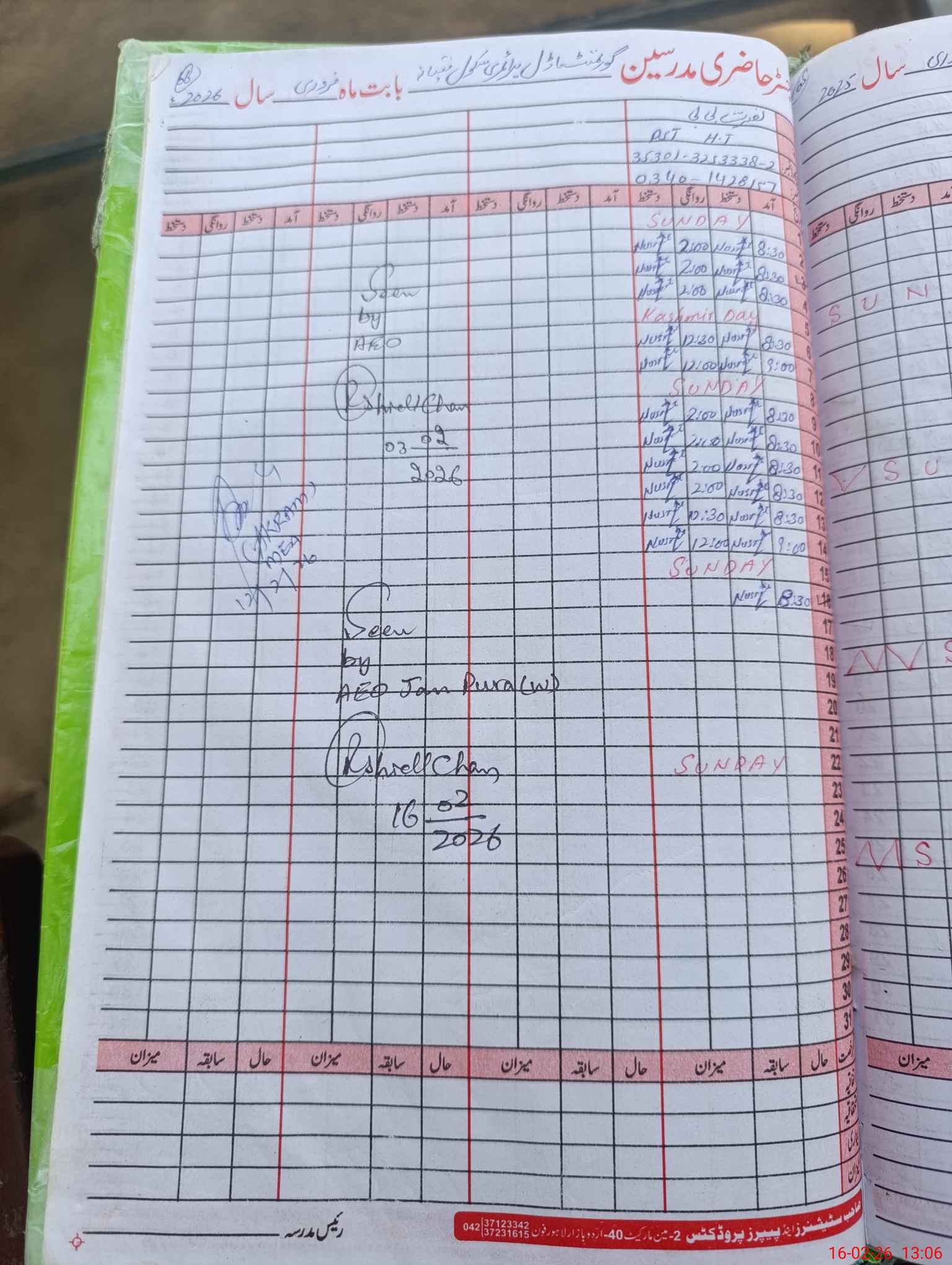 | Name: Nu**** Bi**** Designation: (School Headmaster's/Headmistress's) PST Phone/Cell Number: 03**** |