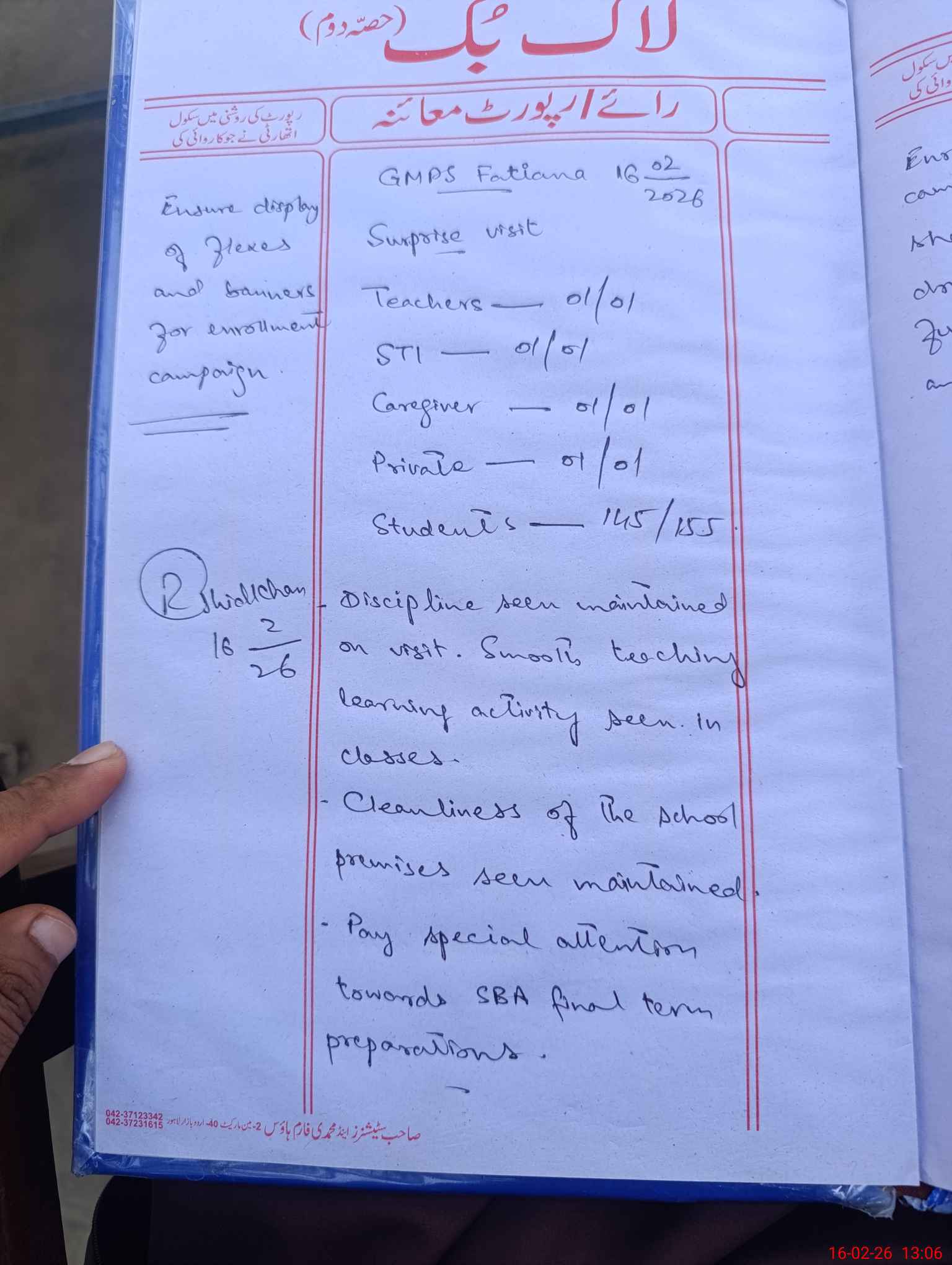 | Attendance Register | Head Teacher | MEA with School | Visit Proof |