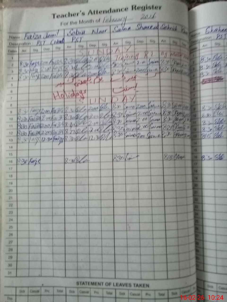 | Leave | Duty | Absent | Maternity | Medical | Ex- Pak |