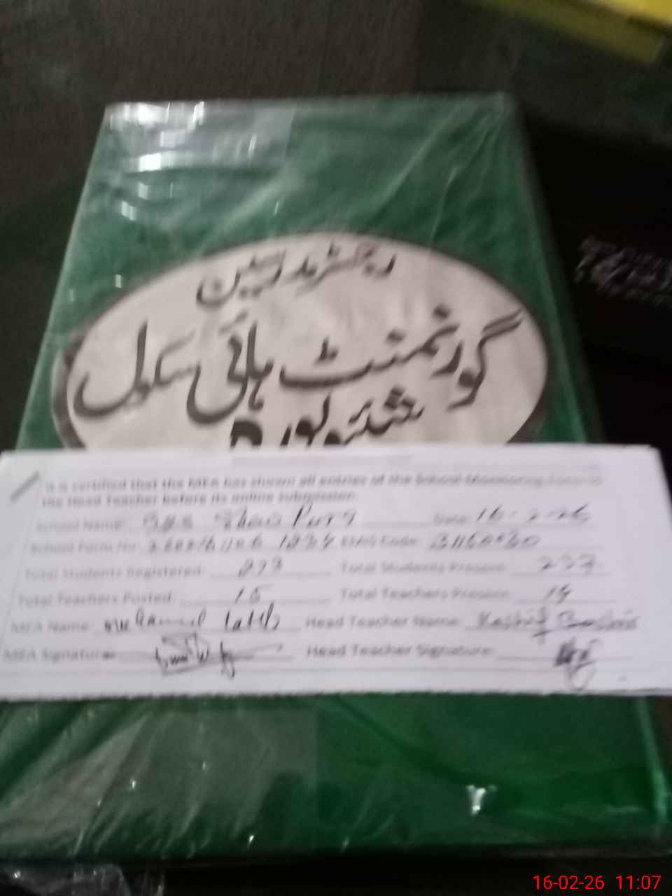| Certified that this School was Inspected by the Undersigned MEA/DMO Today and the Information Stated Above is as Per Record. | |||||