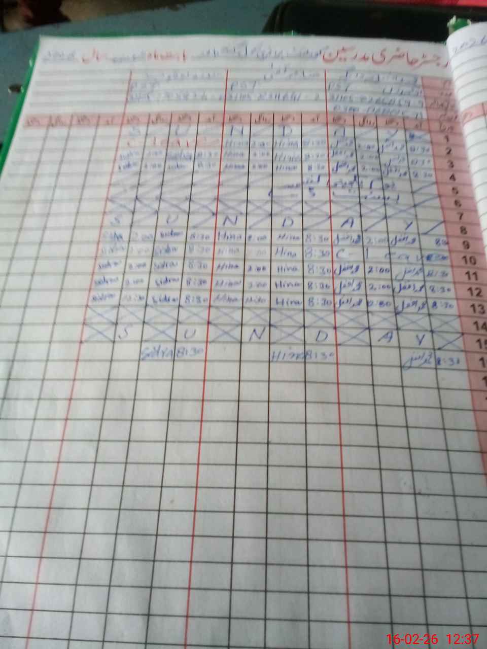 | CNIC | Full Name | Designation | R/C | Absence During Last Calender Month |