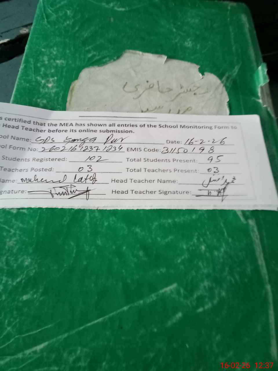 | Attendance Register | Head Teacher | MEA with School | Visit Proof |