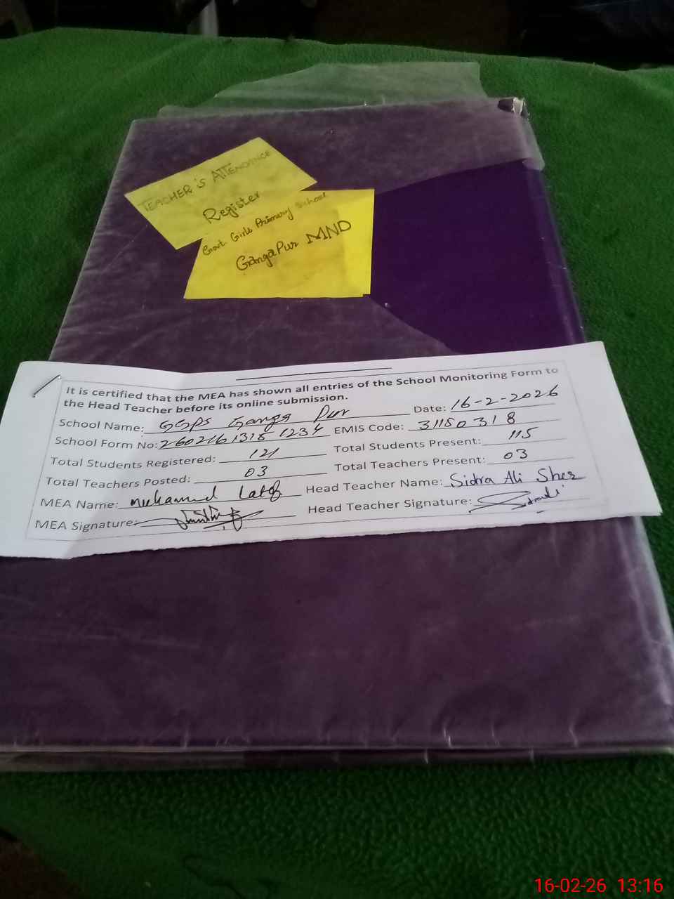 | EMIS Code: 31150318 | Name of School: GGPS GANGA PUR | |||