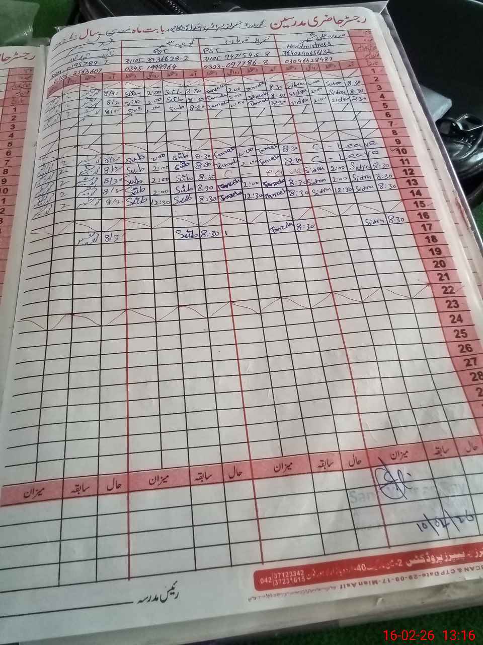 | Name: Si**** Al**** Sh**** Designation: (School Headmaster's/Headmistress's) PST Phone/Cell Number: 03**** |