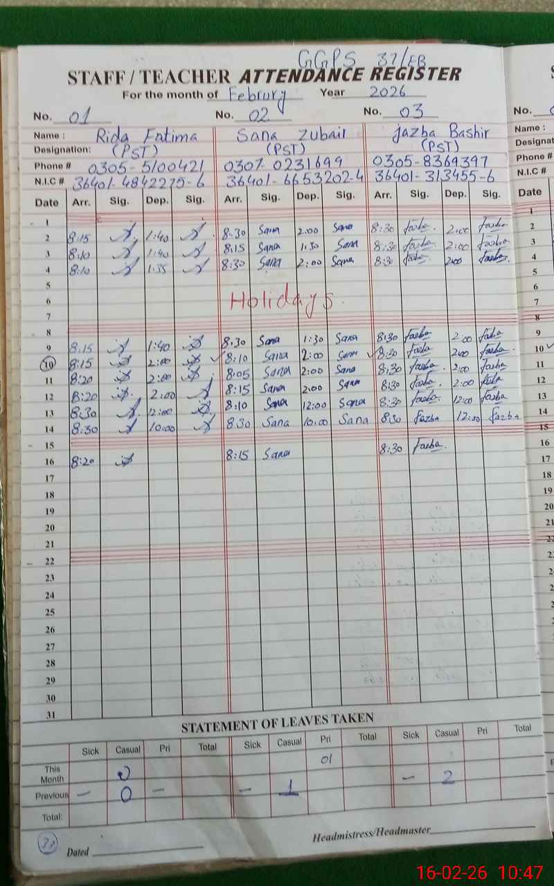 | Name: RI**** FA**** Designation: (School Headmaster's/Headmistress's) PST Phone/Cell Number: 03**** |