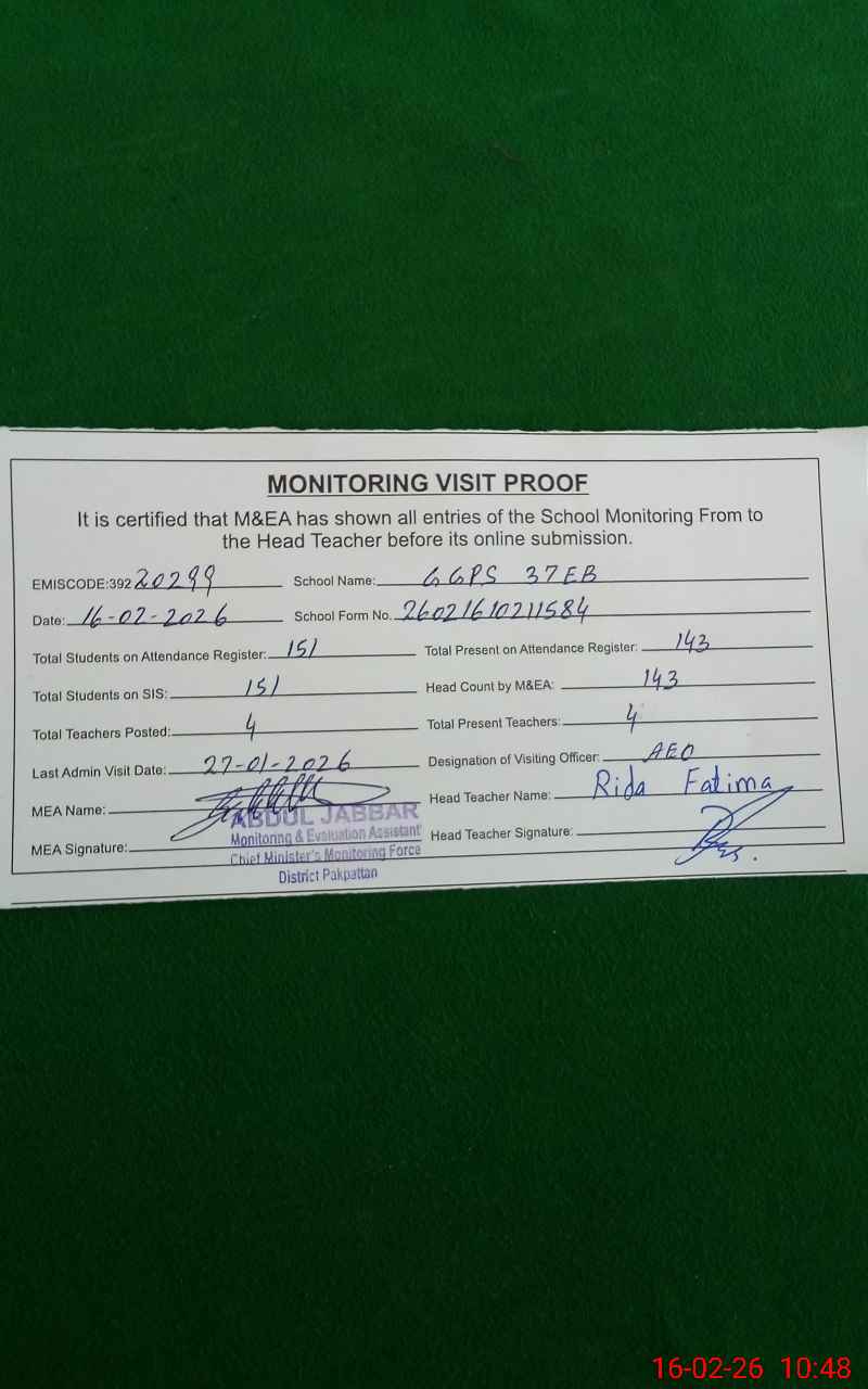 | EMIS Code: 39220299 | Name of School: GGPS 37 EB | |||