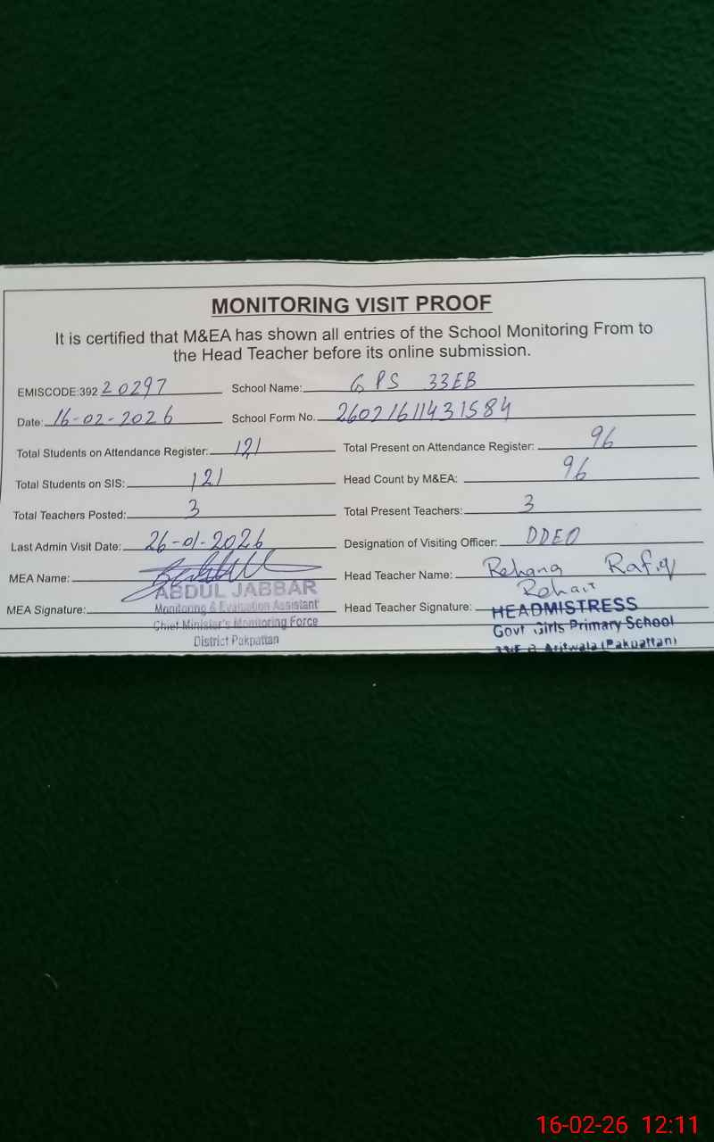 | EMIS Code: 39220297 | Name of School: GGPS 33 EB | |||