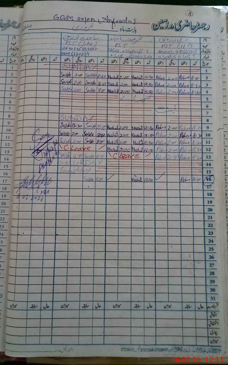 | Name: RE**** RA**** Designation: (School Headmaster's/Headmistress's) PST Phone/Cell Number: 03**** |