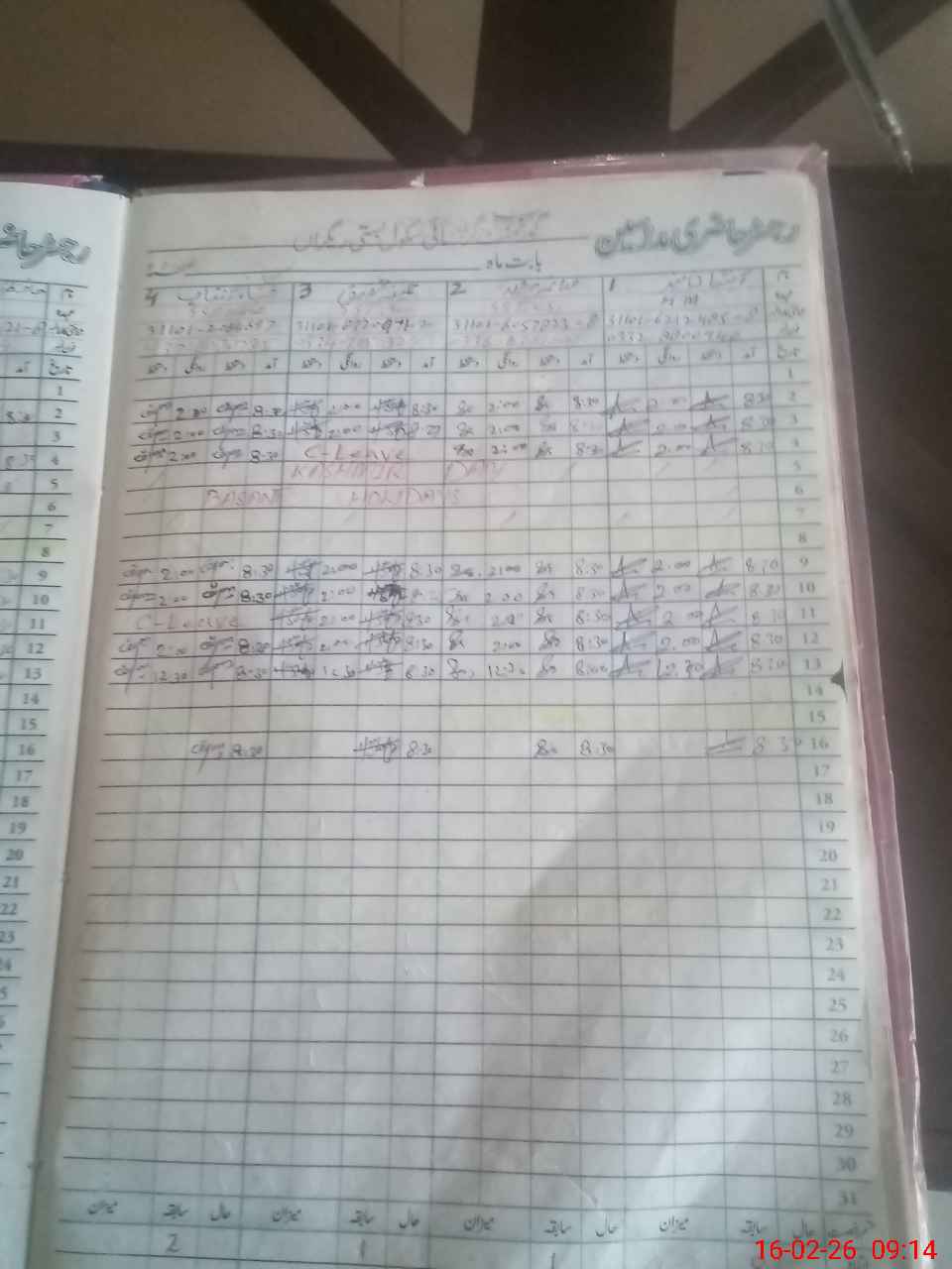 | CNIC | Full Name | Designation | R/C | Absence During Last Calender Month |