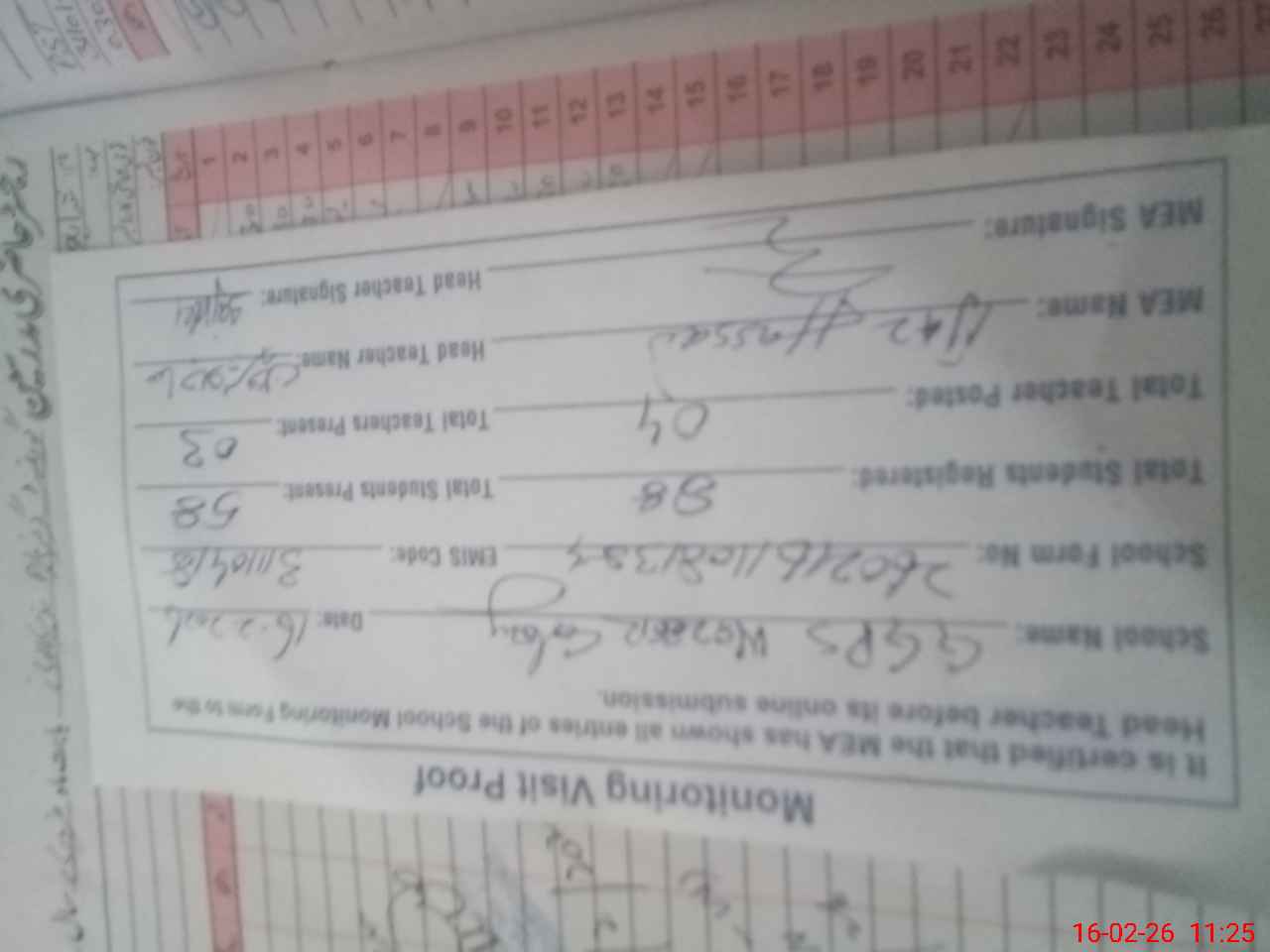 | Certified that this School was Inspected by the Undersigned MEA/DMO Today and the Information Stated Above is as Per Record. | |||||