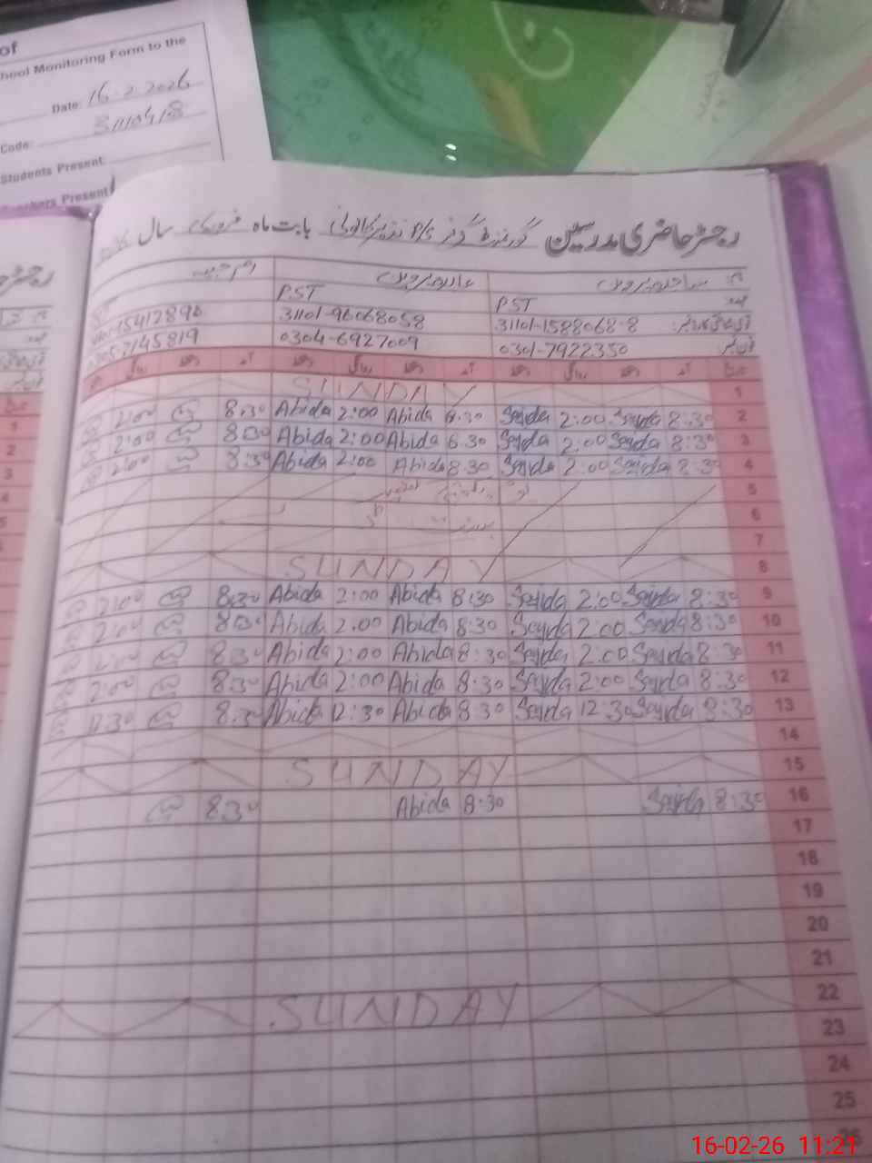 | Name: SA**** PE**** Designation: (School Headmaster's/Headmistress's) PST Phone/Cell Number: 03**** |