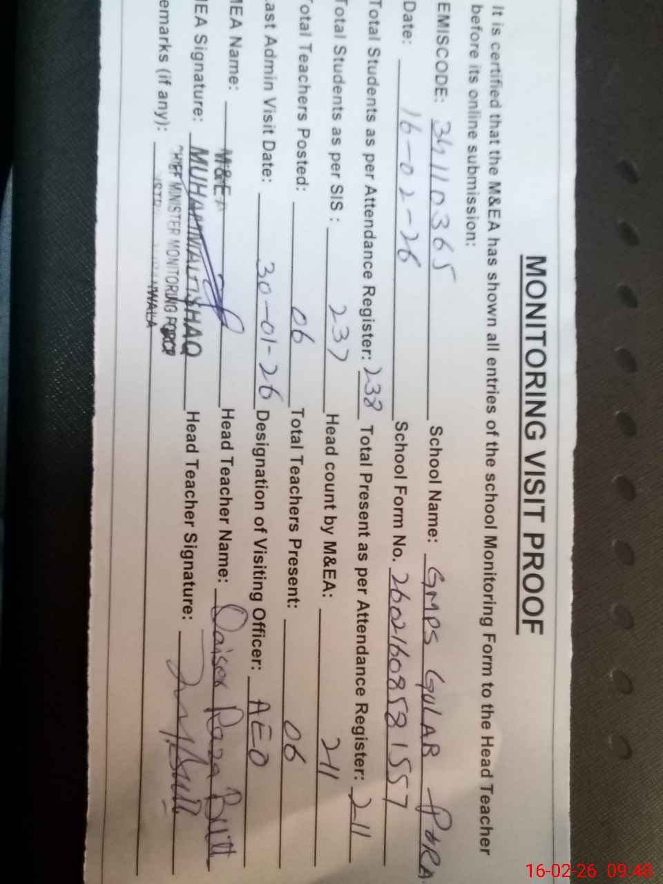 | EMIS Code: 34110365 | Name of School: GMPS GULAB PURA | |||