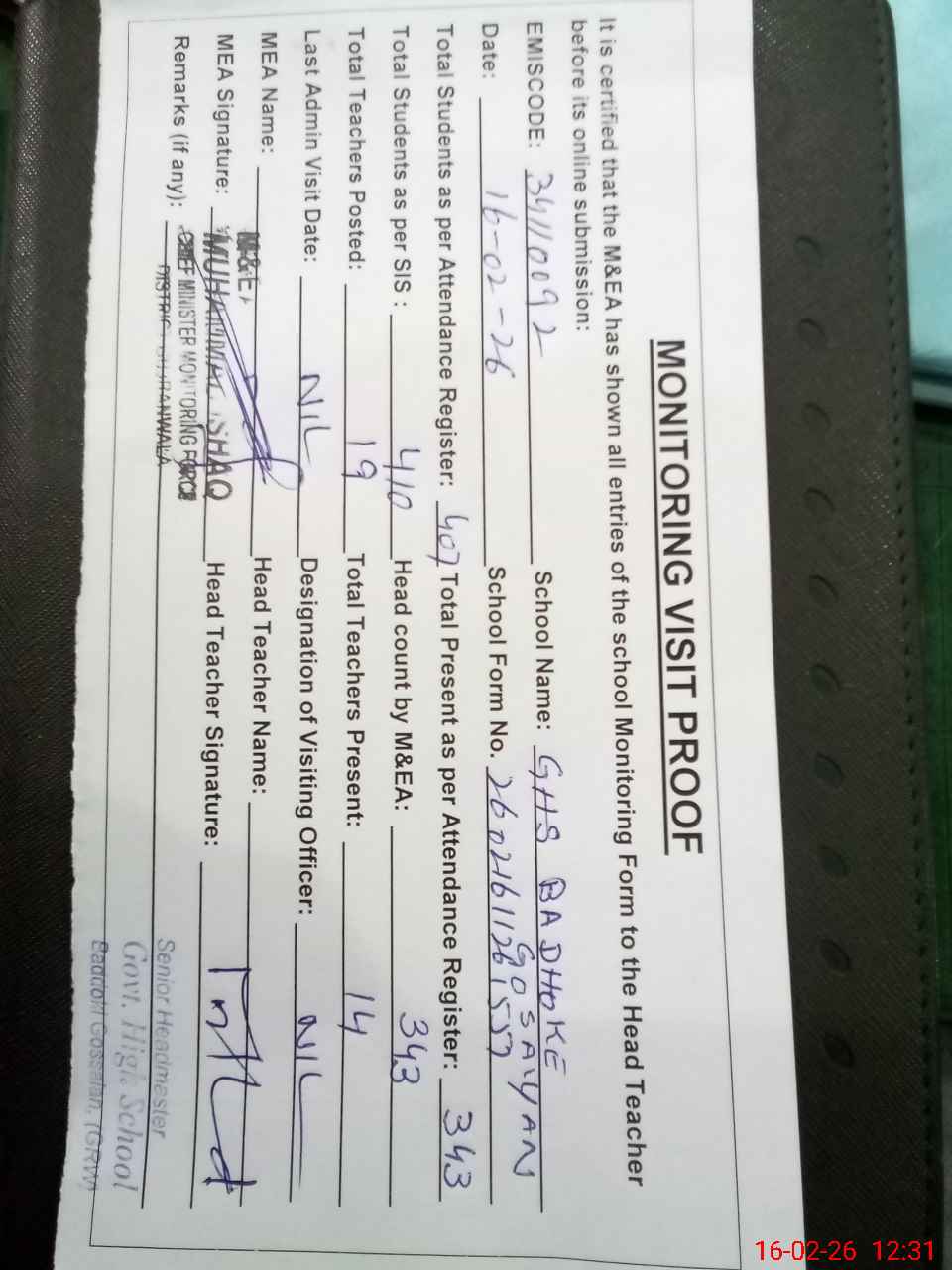 | EMIS Code: 34110092 | Name of School: GHS BADHOKE GOSAIYAN | |||