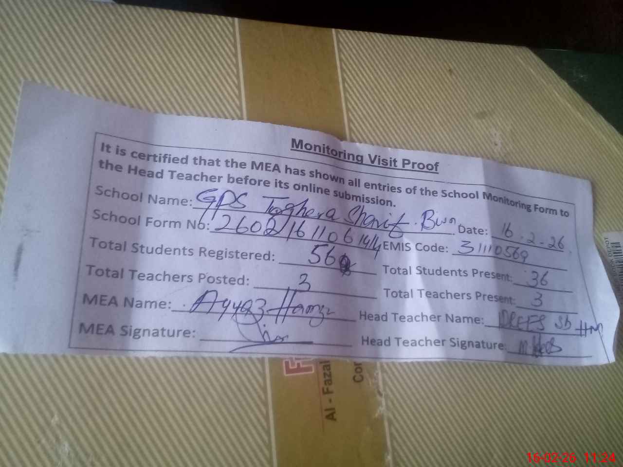 | EMIS Code: 31110569 | Name of School: GPS TOGHRA SHARIF | |||