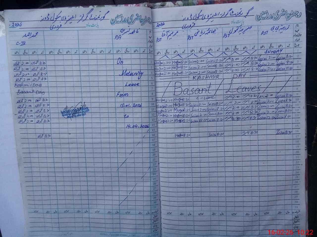 | 32**** | Fa**** Na**** | PST Science/Maths | Regular | 0 | 0 | 0 | 0 | 0 | 0 | 0 | 0 | 0 | Maternity |