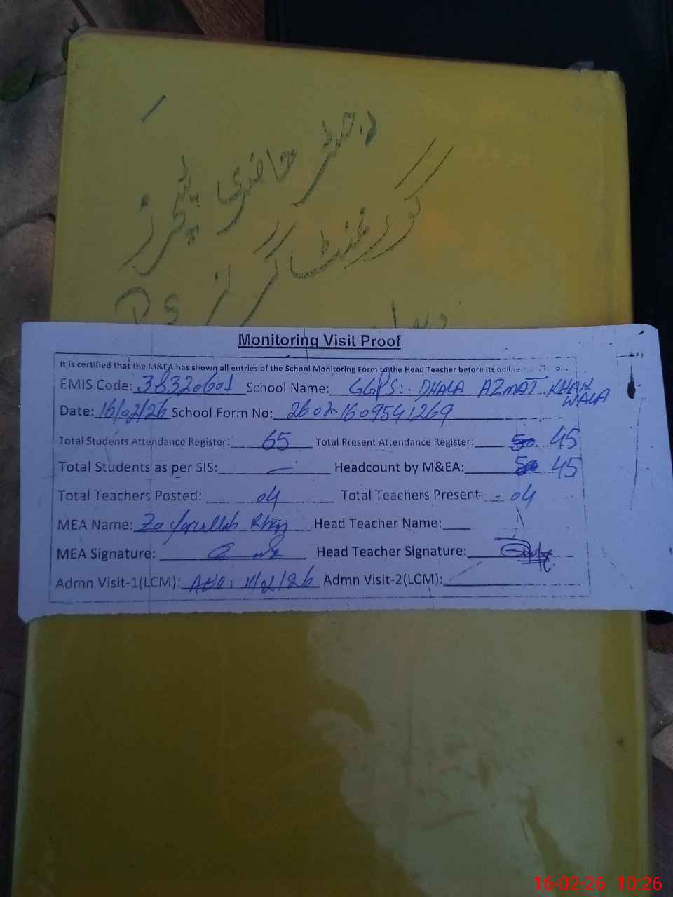 | EMIS Code: 38320601 | Name of School: GGPS DHALA AZMAT KHAN WALA | |||