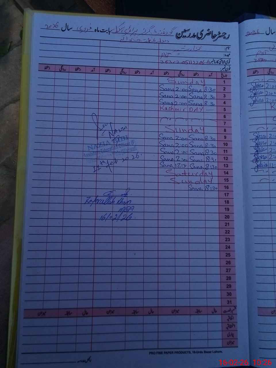 | Monitoring Date: 16-02-2026 | Start Time: 16-02-2026 09:54 AM | End Time: 16-02-2026 10:26 AM | Name of MEA: ZA**** UL**** KH**** | |