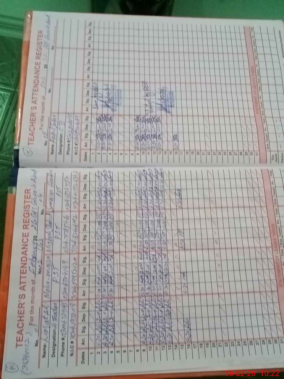 | Name: La**** Al**** Designation: (School Headmaster's/Headmistress's) PST/PTC/JV Phone/Cell Number: 03**** |