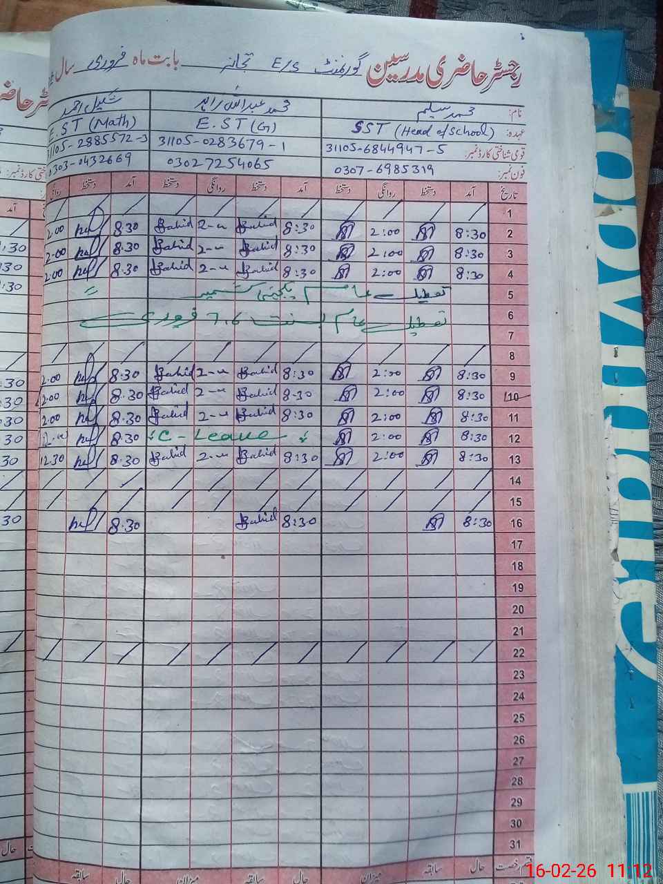 | Name: Mu**** Sa**** Designation: (School Headmaster's/Headmistress's) SST Phone/Cell Number: 03**** |