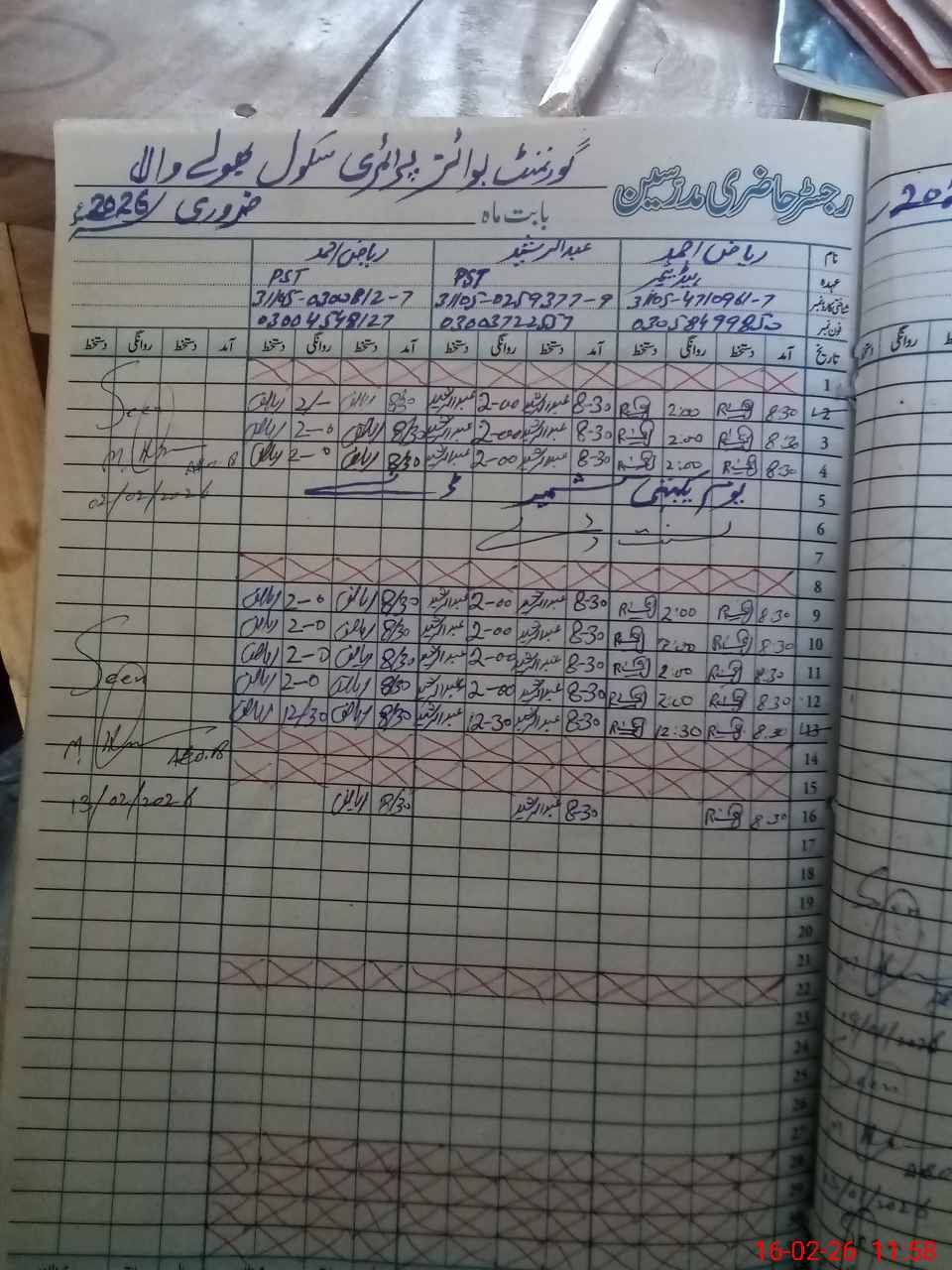 | Name: RI**** AH**** Designation: (School Headmaster's/Headmistress's) PST Phone/Cell Number: 03**** |