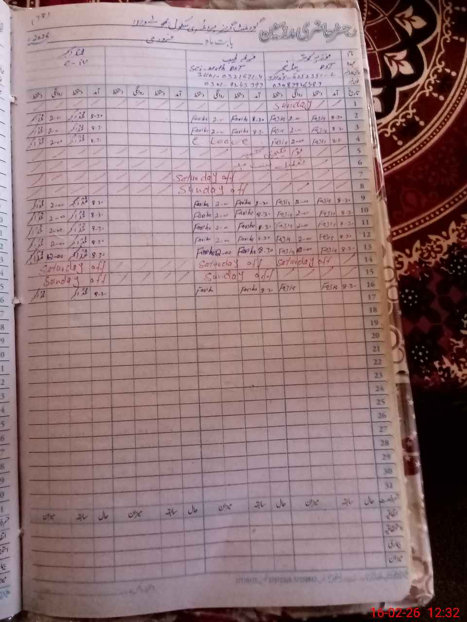 | Leave | Duty | Absent | Maternity | Medical | Ex- Pak |