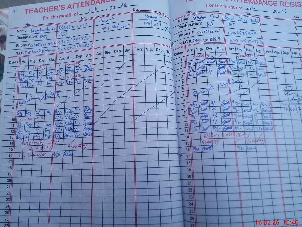 | CNIC | Full Name | Designation | R/C | Absence During Last Calender Month |