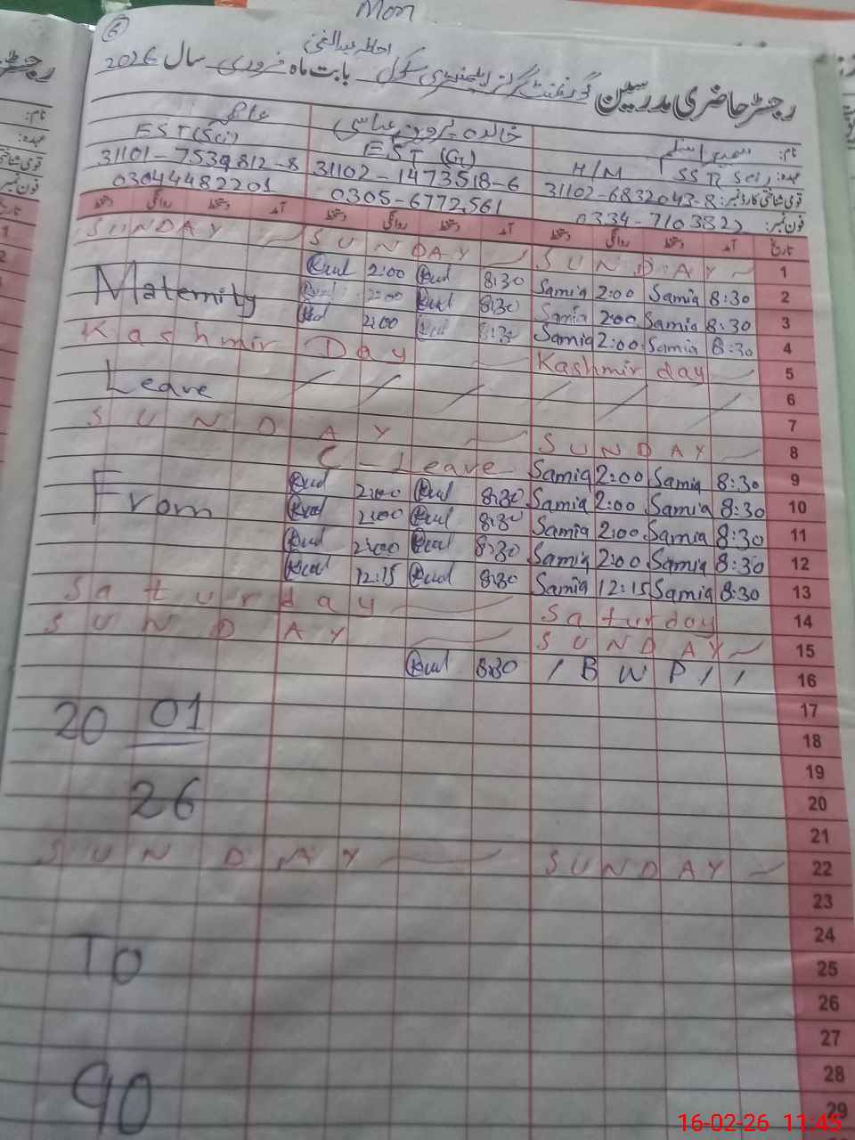 | Name: Sa**** As**** Designation: (School Headmaster's/Headmistress's) SST Phone/Cell Number: 03**** |