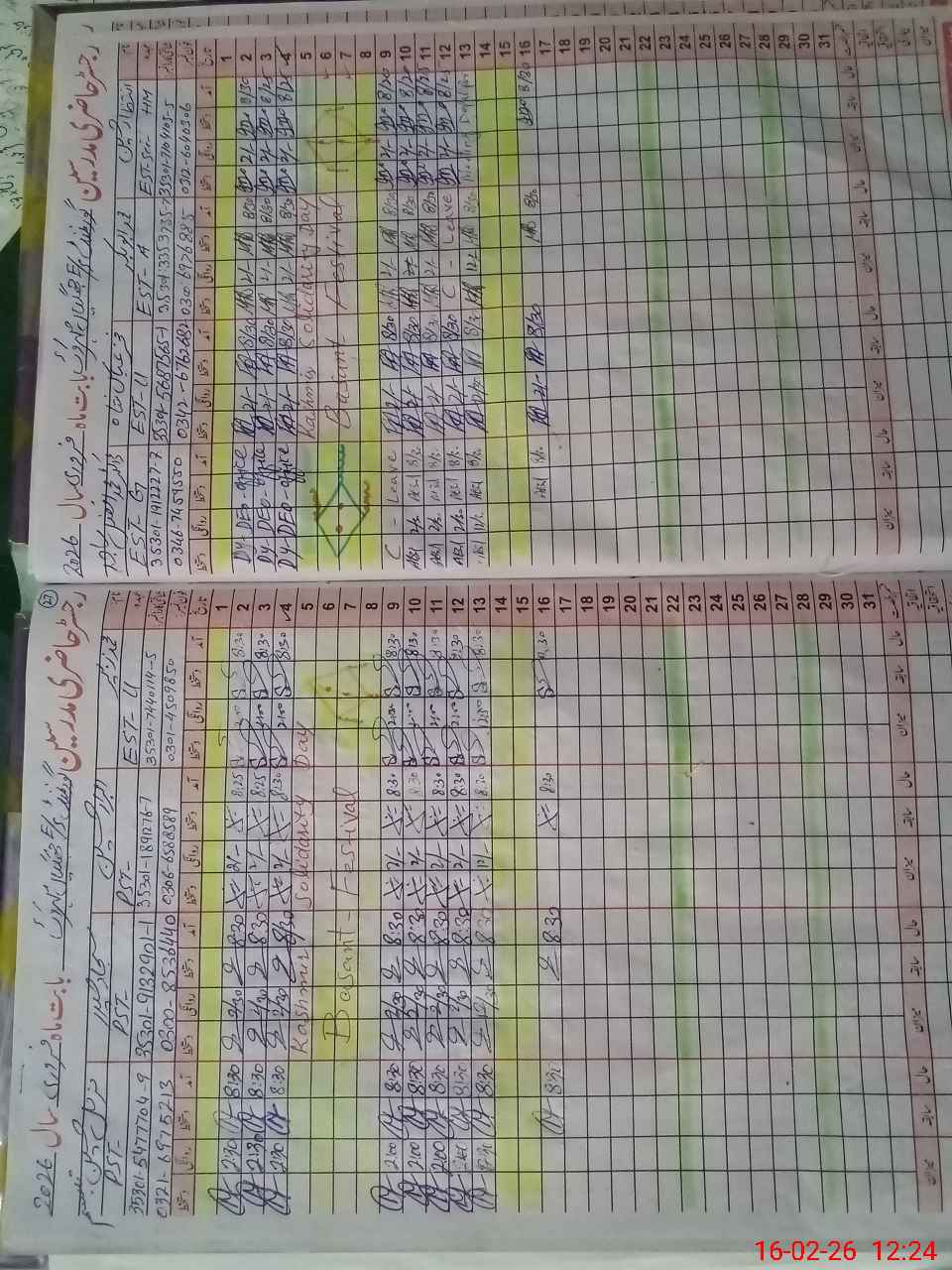 | CNIC | Full Name | Designation | R/C | Absence During Last Calender Month |