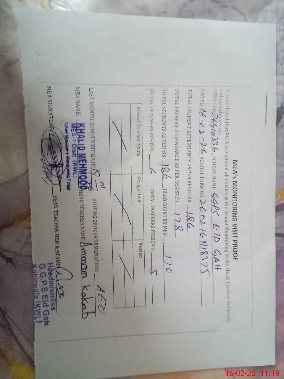| EMIS Code: 36410336 | Name of School: GGPS EID GHAH, KABIRWALA | |||