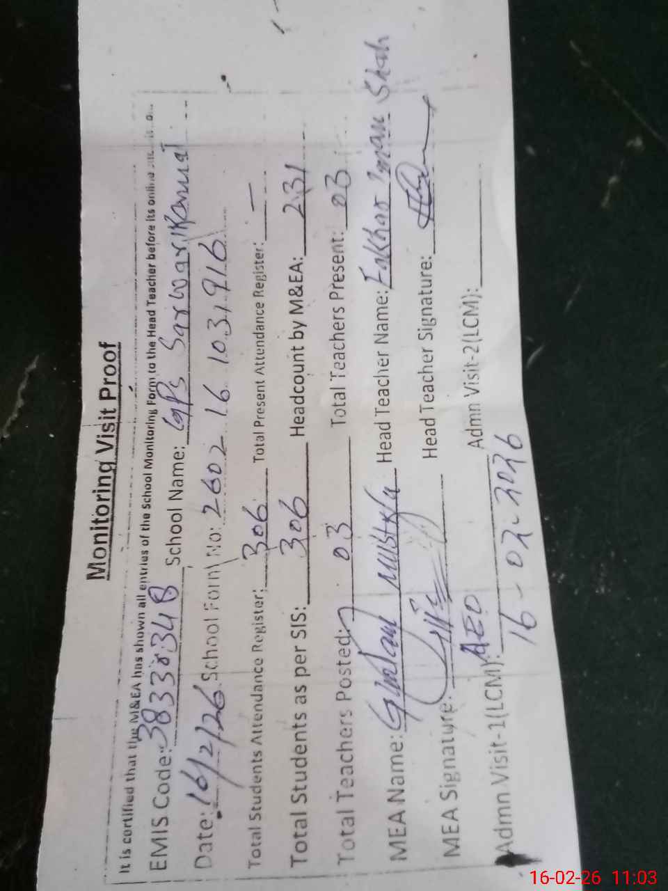 | EMIS Code: 38330348 | Name of School: GPS Sarwar-i-Kainat (SAW) Campus Kundian | |||