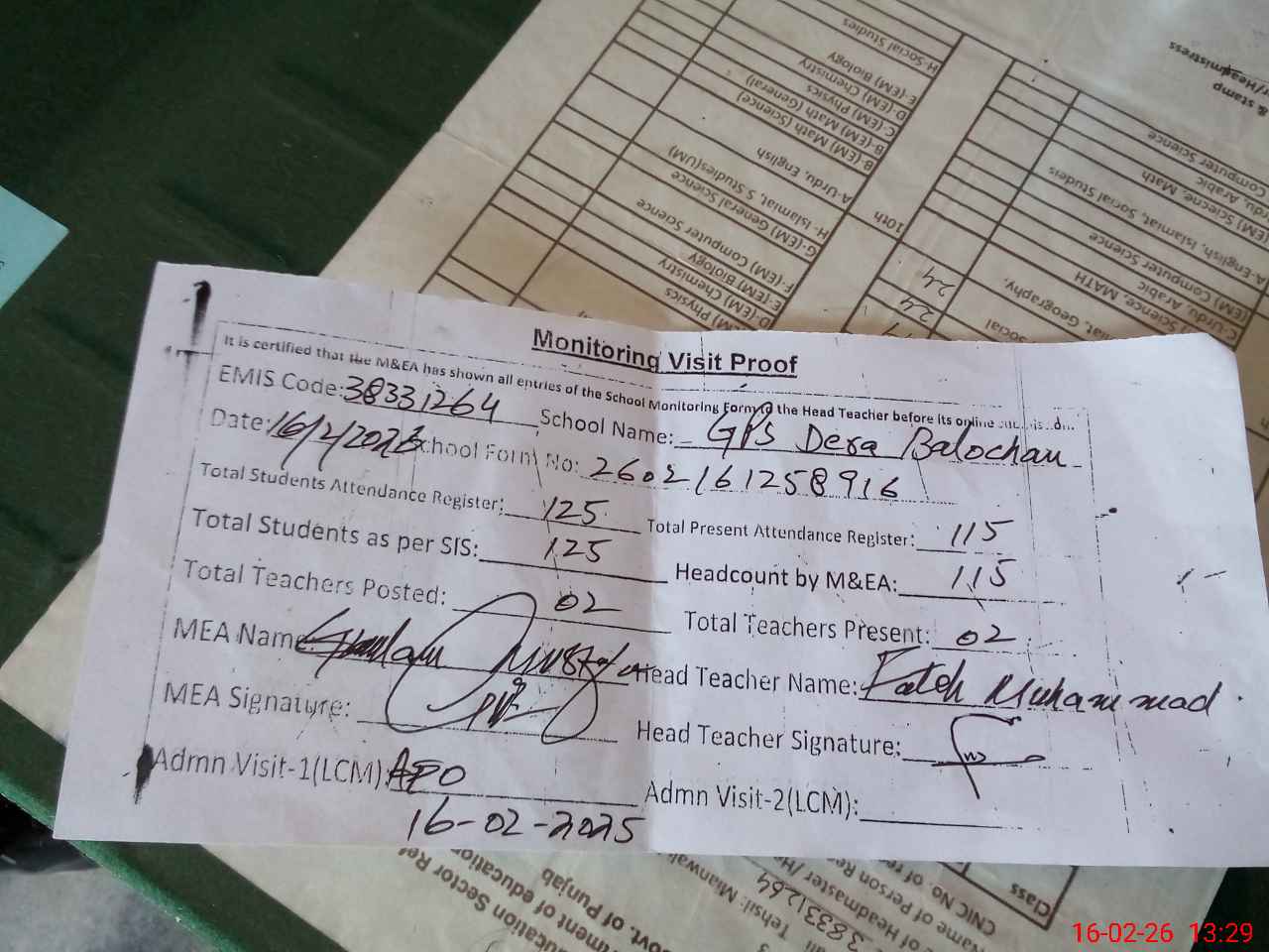 | EMIS Code: 38331264 | Name of School: GPS DERA BALOCHAN WALA | |||