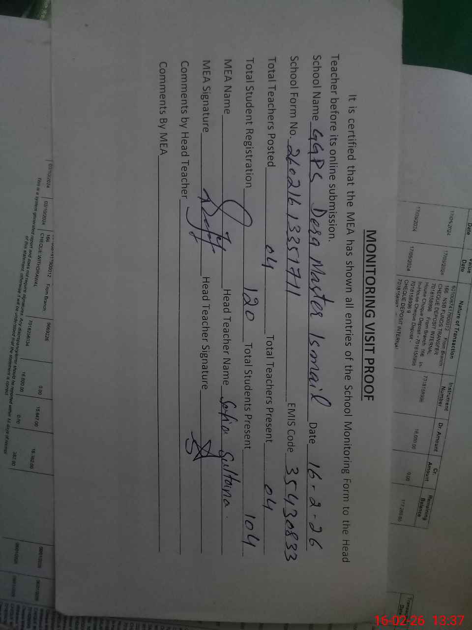 | EMIS Code: 35430833 | Name of School: GGPS DERA MASTER ISMAIL | |||