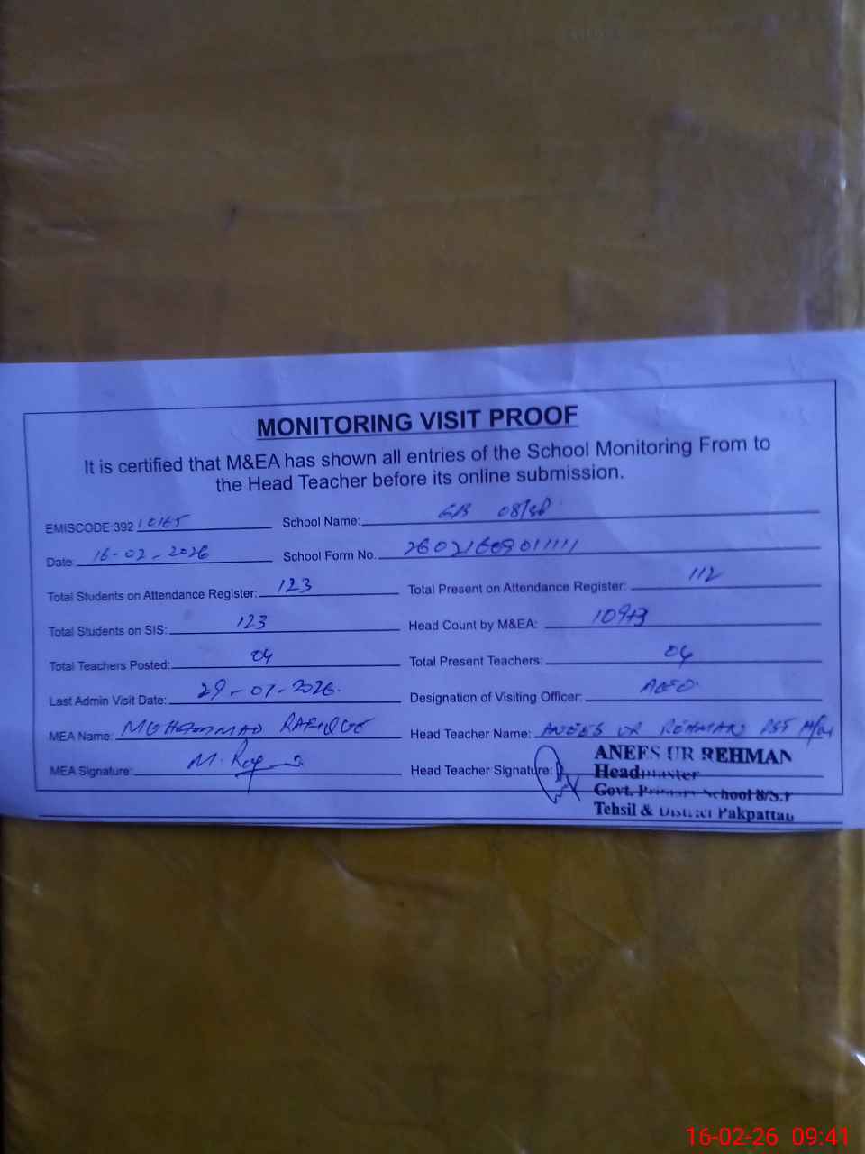 | EMIS Code: 39210165 | Name of School: GPS 8 SP | |||