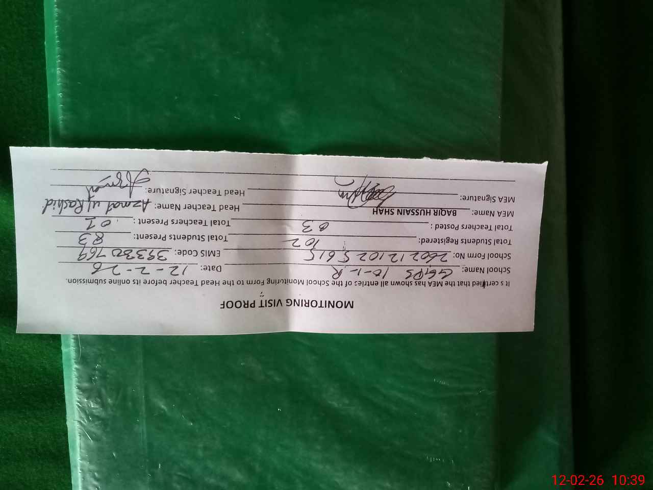 | Certified that this School was Inspected by the Undersigned MEA/DMO Today and the Information Stated Above is as Per Record. | |||||