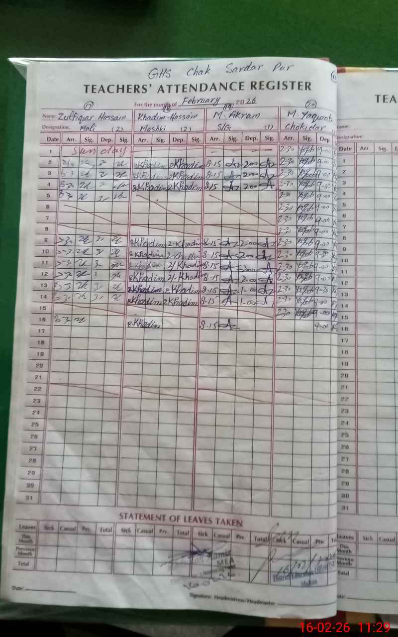 | Remarks (Use Separate Page if Required): Roznamcha of students not maintained | |||||
