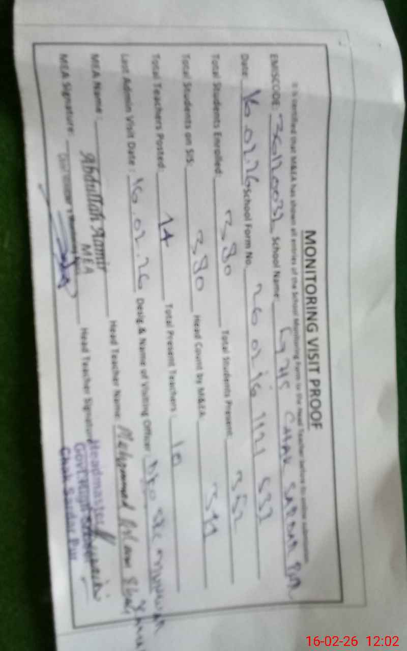 | EMIS Code: 36120032 | Name of School: GHS CHAK SARDAR PUR SHUJABAD | |||