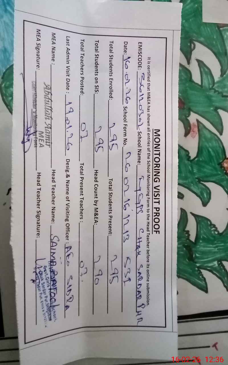 | EMIS Code: 36120302 | Name of School: GGPS CHAK SARDAR PUR TEH. SHUJABAD | |||