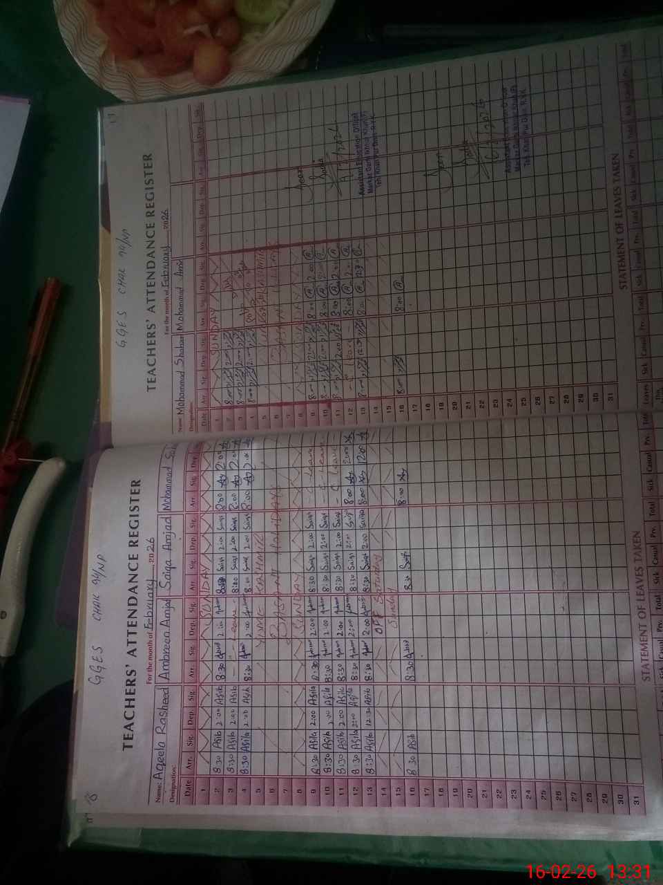 | Leave | Duty | Absent | Maternity | Medical | Ex- Pak |