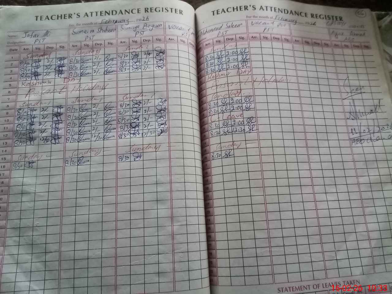 | Leave | Duty | Absent | Maternity | Medical | Ex- Pak |