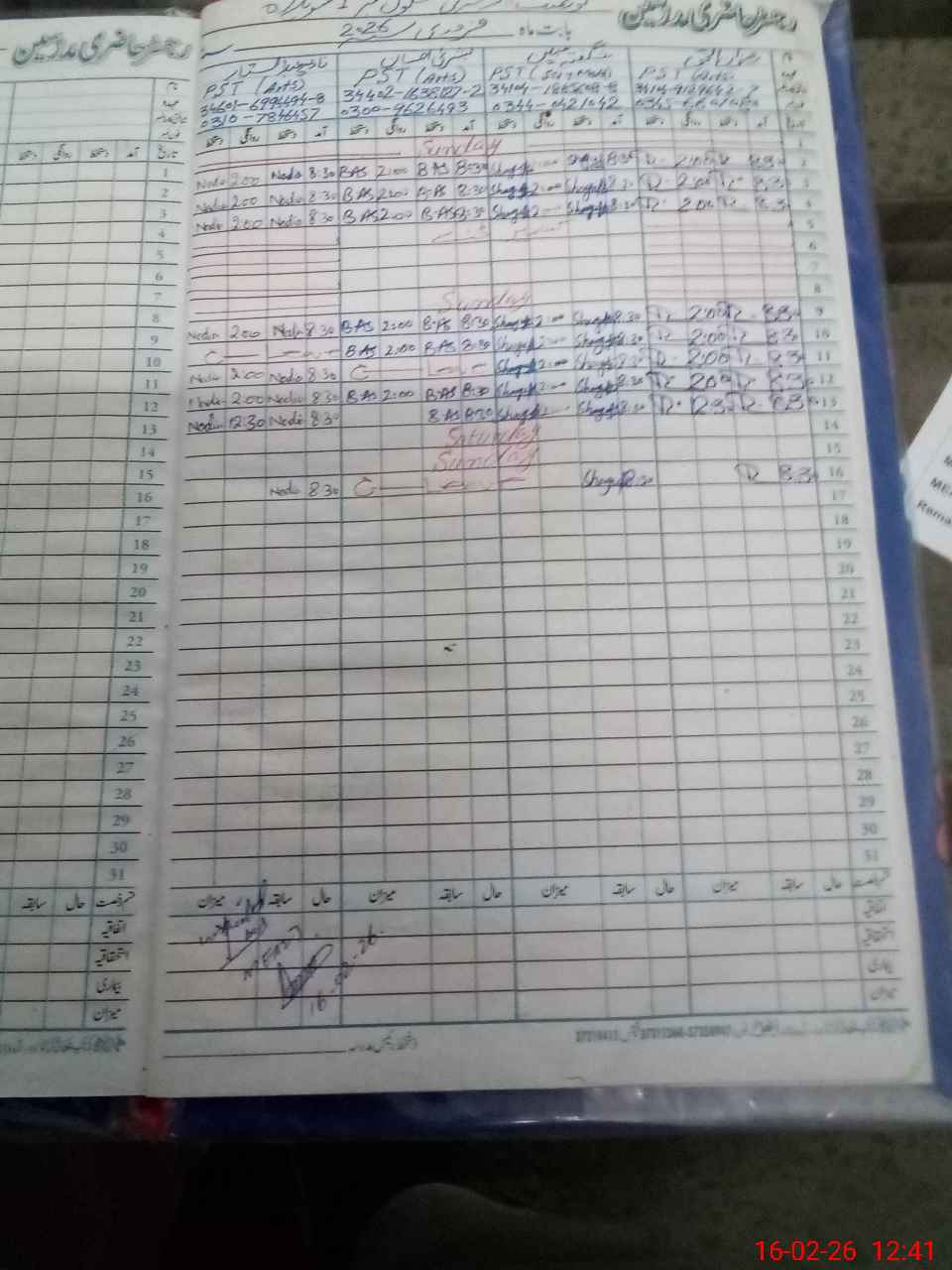 | CNIC | Full Name | Designation | R/C | Absence During Last Calender Month |