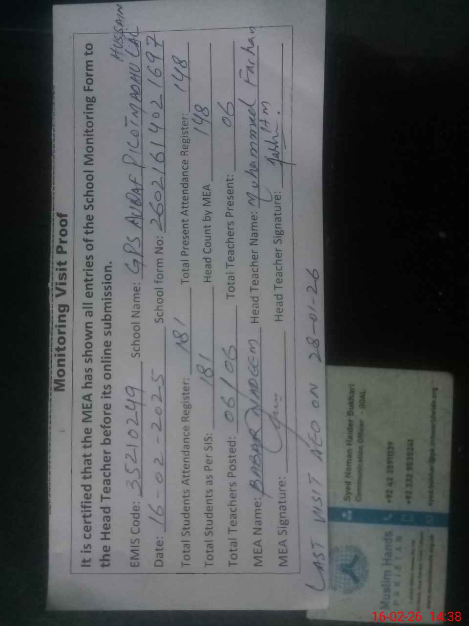 | EMIS Code: 35210249 | Name of School: GPS AUQAF PILOT MADHU LAL HUSSAIN | |||