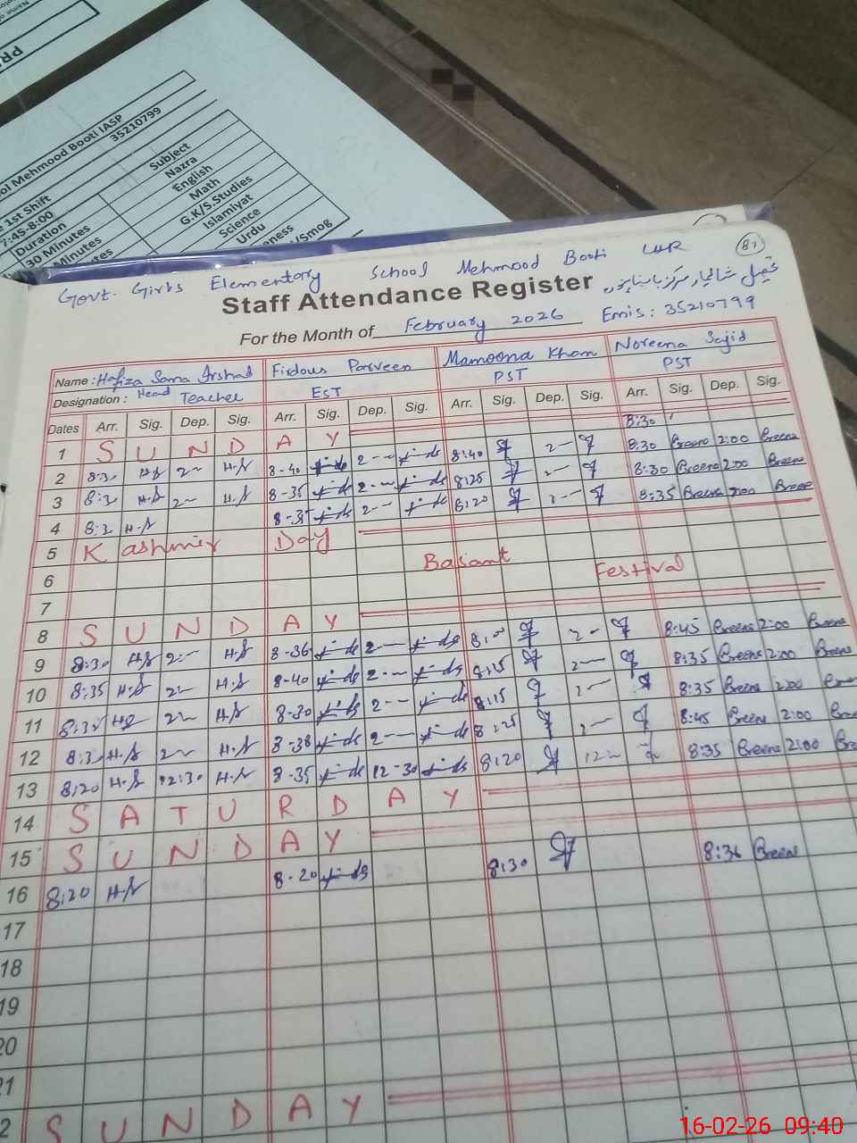 | Name: Ha**** Sa**** Ir**** Designation: (School Headmaster's/Headmistress's) PST Phone/Cell Number: 03**** |