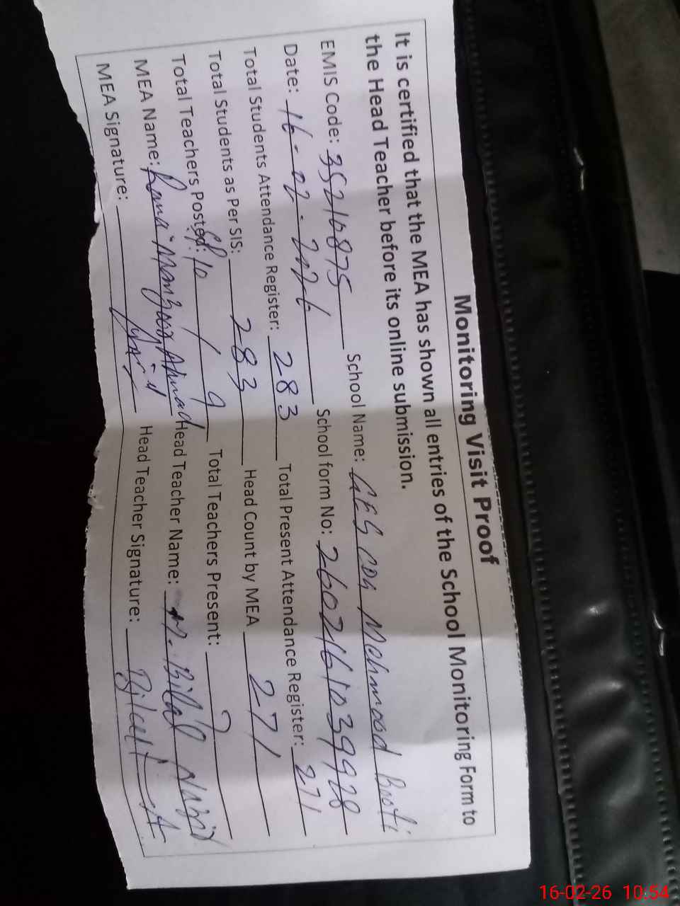 | EMIS Code: 35210875 | Name of School: GES MEHMOOD BOOTI (EX-MCL) | |||