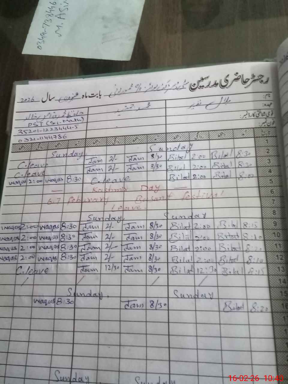 | Name: Bi**** Na**** Designation: (School Headmaster's/Headmistress's) PST Phone/Cell Number: 03**** |