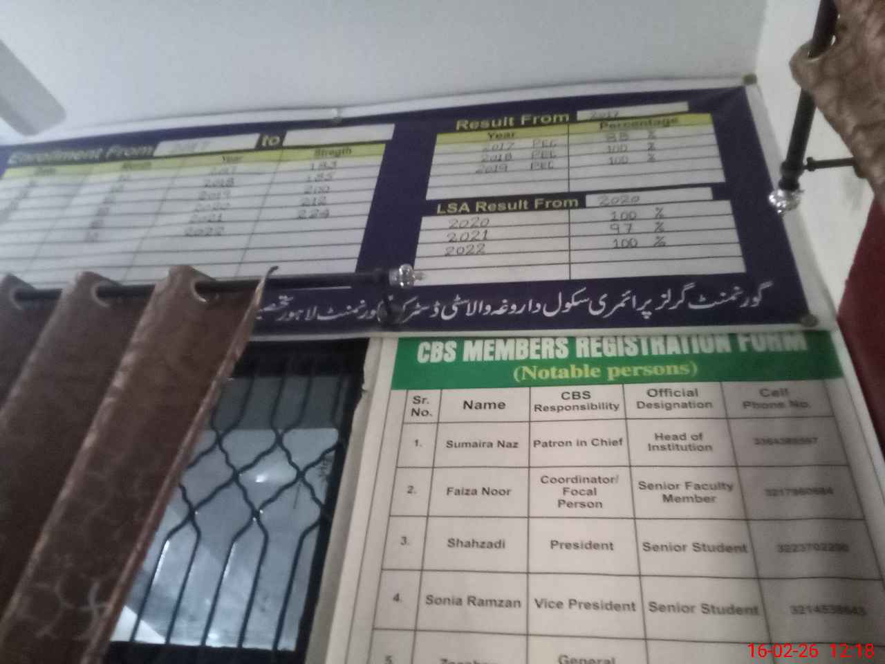 | Name: SU**** NA**** Designation: (School Headmaster's/Headmistress's) Head Mistress Phone/Cell Number: 03**** |
