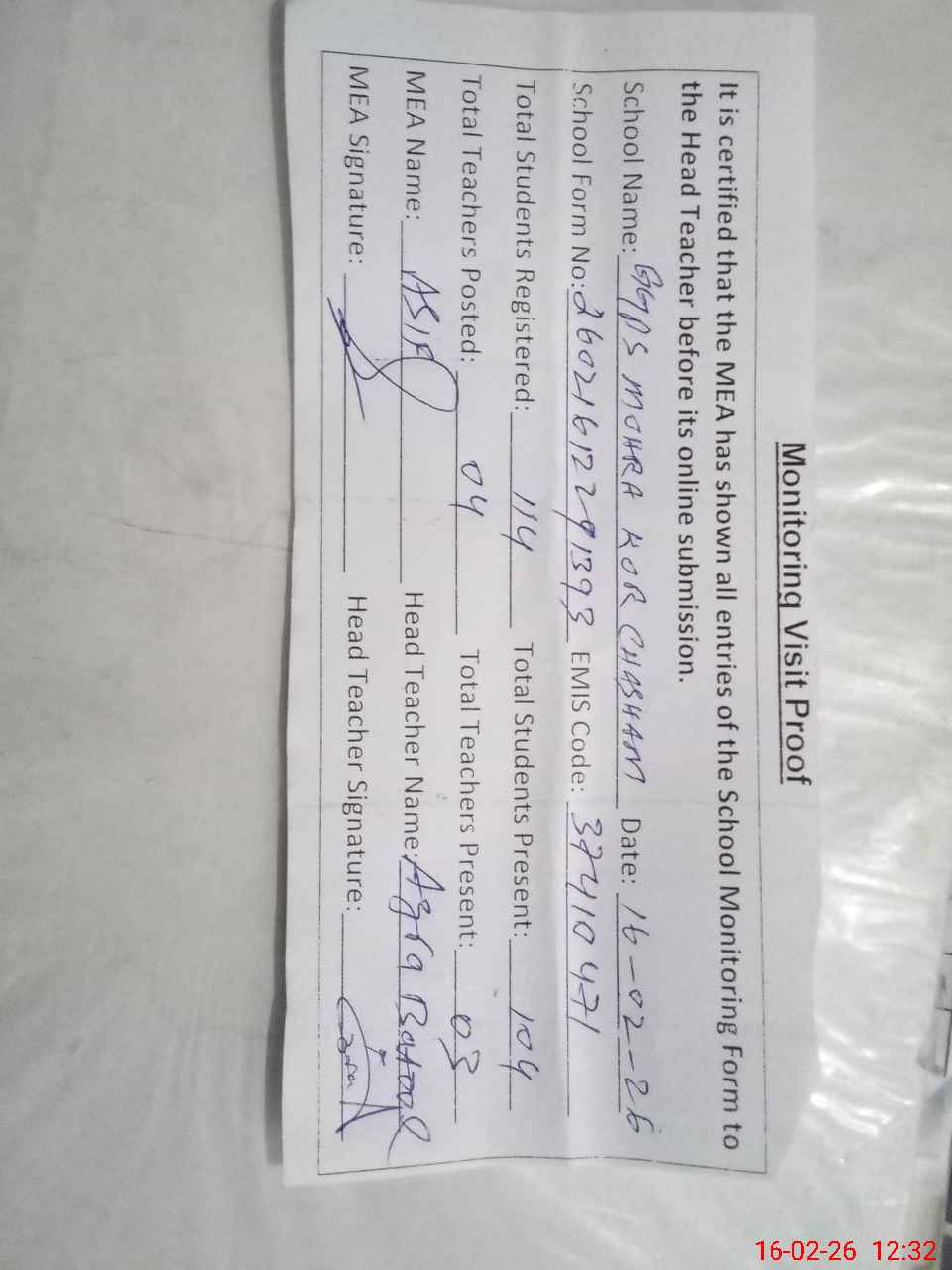 | EMIS Code: 37410471 | Name of School: GGPS MOHRA KOR CHASHAM | |||