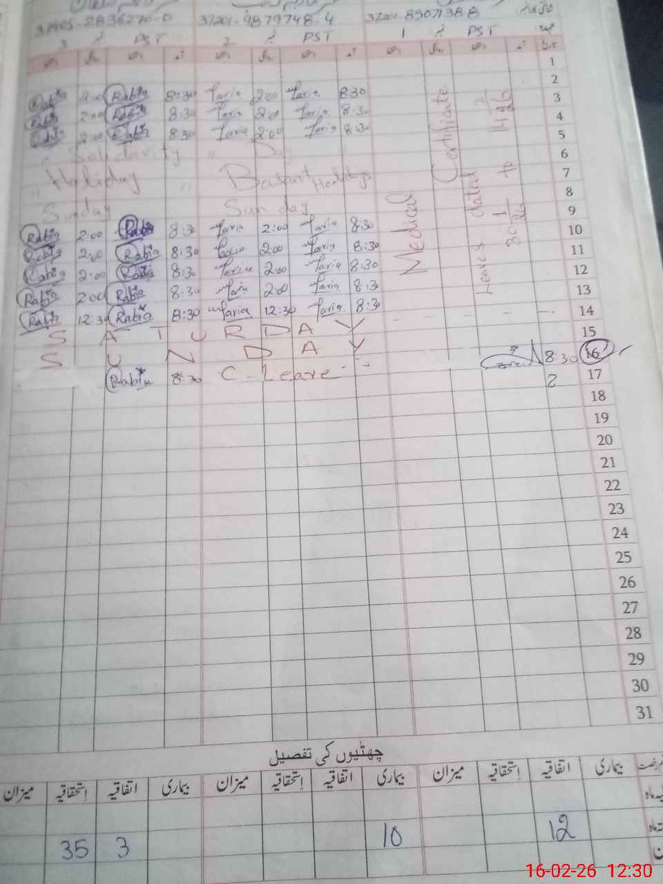 | 37**** | Ma**** Za**** | PST Arts | Regular | 0 | 0 | 0 | 0 | 0 | 0 | 0 | 0 | 0 | Casual |