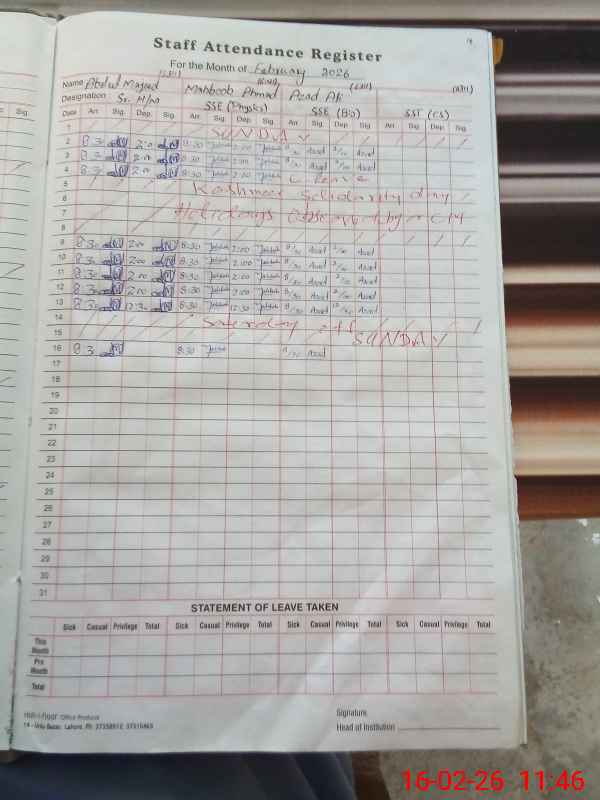| Name: AB**** MA**** Designation: (School Headmaster's/Headmistress's) S H M Phone/Cell Number: 03**** |