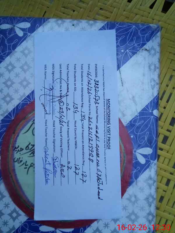 | Certified that this School was Inspected by the Undersigned MEA/DMO Today and the Information Stated Above is as Per Record. | |||||